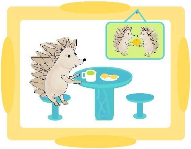 После водных процедур ежик сел за стол и с аппетитом съел один оладик и выпил несколько глоточков ароматного мятного чая.