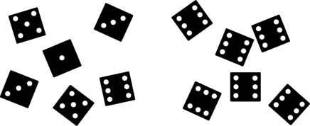 Справа ещё одна картинка – с брошенными кубиками. Здесь порядок задаётся не расположением кубиков, а выпавшими на них числами. Слева – полный разброд и шатание, хаотическое разнообразие. А справа – явно подобранные грани, одна к одной! Из этого рисунка понятно также, насколько порядок в природе менее вероятен, чем беспорядок. Это ж сколько раз надо бросать кубики, чтобы выпали одни шестёрки? Понятно, что чаще всего будет воспроизводиться хаотичное состояние, когда на разных кубиках выпадают случайные числа. А всех шестёрок можно и до конца жизни не дождаться!