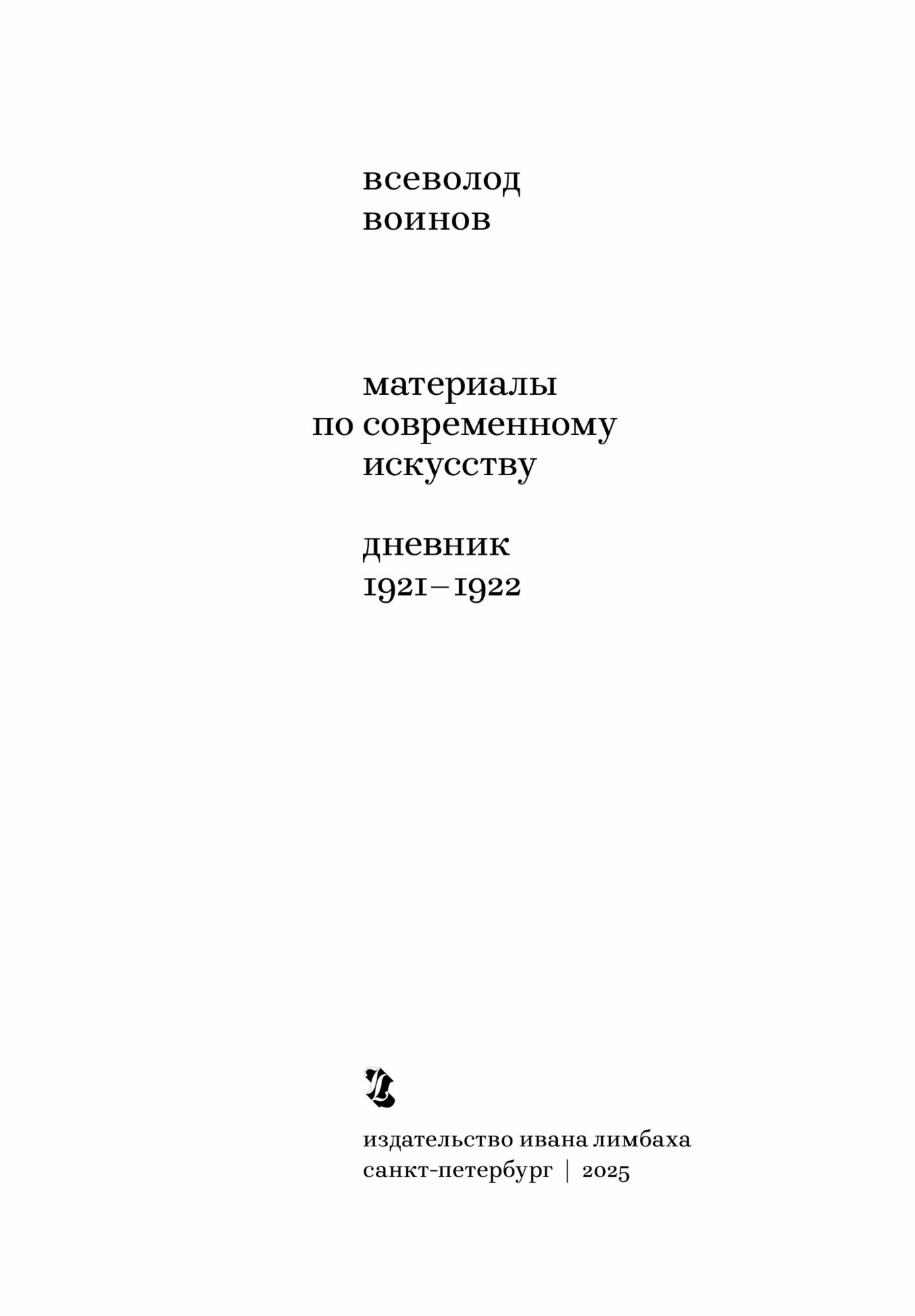 Настоящее издание представляет 1-й том намеченной публикации дневников художника, историка искусства, сотрудника Русского музея Всеволода Владимировича Воинова. Дневник имеет авторское заглавие «Материалы по современному искусству» и включает записи 1921–1922 гг. Последующие тома будут посвящены событиям 1923–1928 гг.