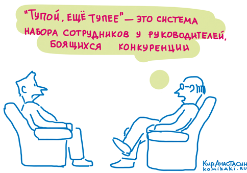 Итог: рост наших подчиненных — это очень классно. Более того, для вас как руководителя это единственный способ выходить на следующий карьерный уровень. Так что не боимся выглядеть глупо, не боимся умников, подступающих снизу. В конечном счете ваша команда должна состоять из суперклассных профессионалов. А ваша роль — суперклассно этими профессионалами управлять.