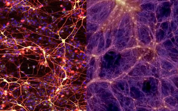 Я узнала, что физики измерили спектральную плотность распределения материи в обеих системах и обнаружили что колебания в нейронной сети мозга и распределение материи в космической паутине, следовали одинаковым закономерностям. Более того, параметры связности и кластеризация тоже продемонстрировали поразительное сходство, то есть мозг и Вселенная — могли эволюционировать по схожим принципам! На самом деле, если ты посмотришь на снимок нейронной сети головного мозга под микроскопом, а затем на фотографию скоплений галактик, тебе будет сложно отличить одно от другого.