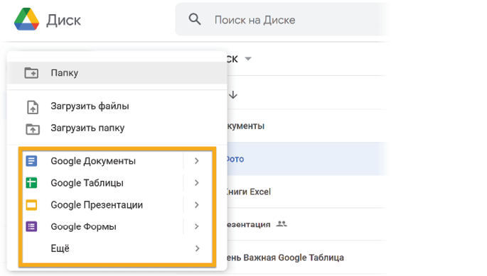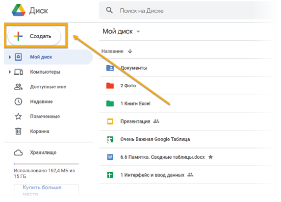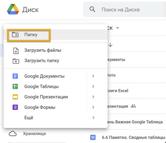 Создание новых документов и папок на Google Диске. Организация дискового пространства