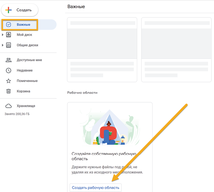 Кроме того, в «Важных» можно создавать рабочие области — о них ниже.