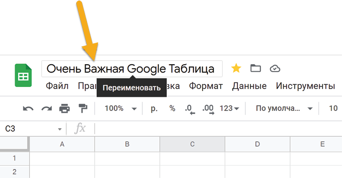В редакторах (Таблицы/Документы/Презентации) можно изменить имя файла, просто щелкнув по нему:
