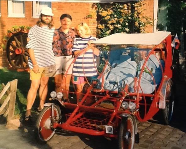 Вот так — из социального переутомления, всеобщей гражданской панихиды и чего-то ещё — родилась чудная идея гибрида — велика и авто, в котором, и сидения рядом, и педали вместо мотора, а всякого рода мечтания, романтика плюс поэзия, как паруса зыбкой надежды страстной и неразрывной любви!