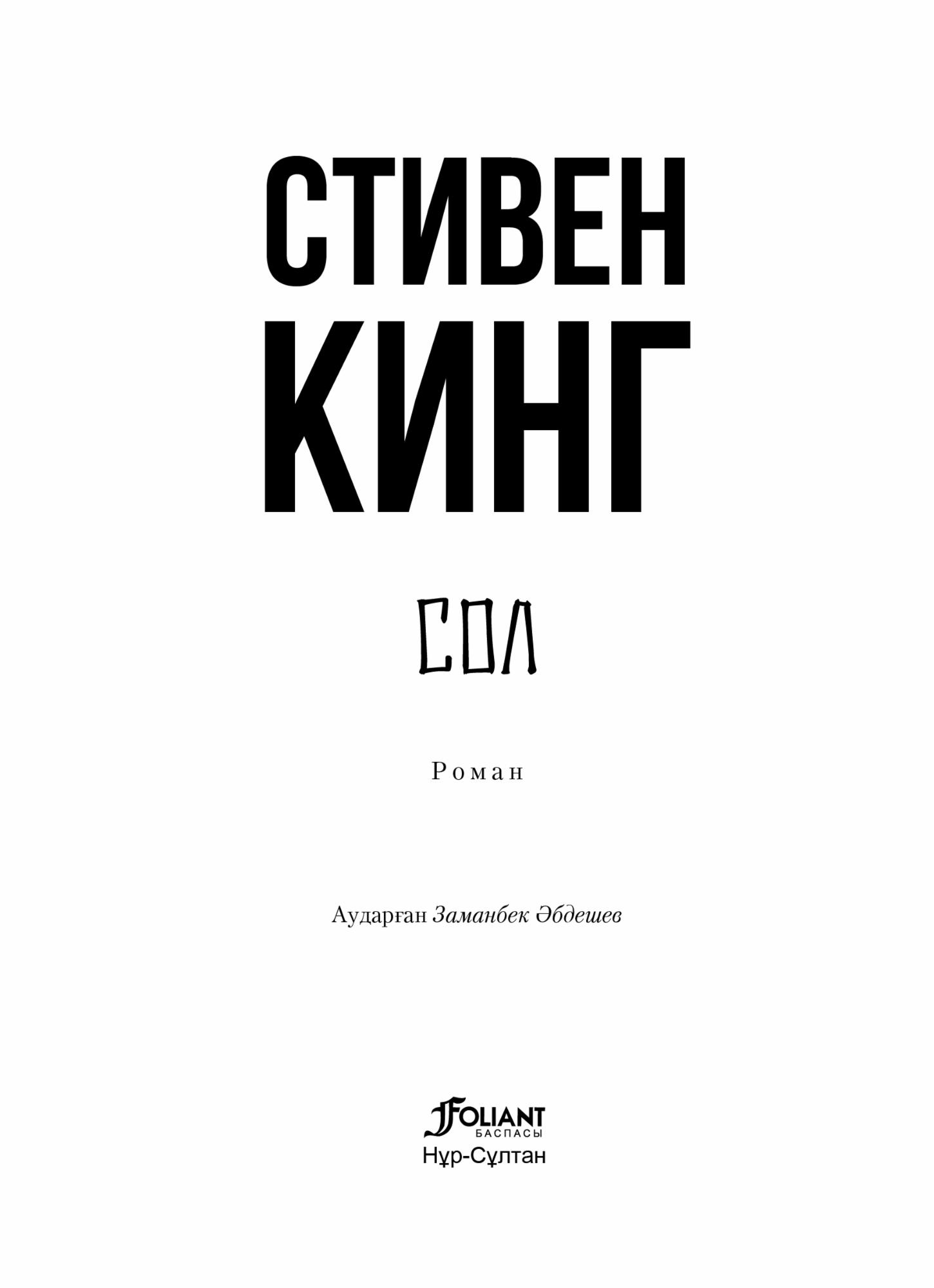 Бұл кітабымды зор ризашылықпен балаларыма арнаймын: он төрт жастағы Наоми Рейчел Кингке, он екі жастағы Джозеф Хиллстром Кингке және жеті жастағы Оуэн Филип Кингке.
