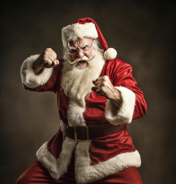 Это был определённо не Дед Мороз, поэтому мистер Клаус, недолго думая, набросился на странного пришельца с кулаками, пытаясь нокаутировать и захватить его в плен. На поверку мужик оказался таким же железным, как на вид. Удары, способные вывести из строя самых закалённых бойцов, совершенно не действовали на странного пришельца.
