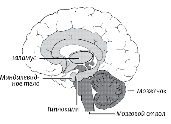 В человеческом мозге сохранились некоторые структуры, которые были уже у древнейших млекопитающих. Эти структуры сформировались примерно 250 миллионов лет назад, и их совокупность именуется лимбической системой. Древнейшие части коры головного мозга и островки серого вещества с нервными клетками внутри называются ядрами, и многие из них играют важную роль в основополагающих функциях организма.