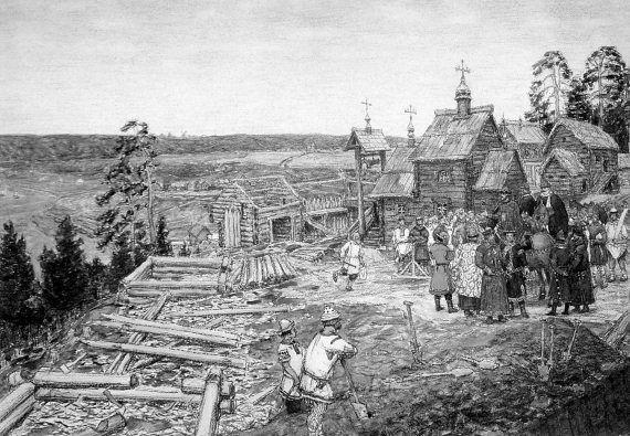 Постройки первых стен Кремля Юрием Долгоруким в 1156 г. 1917 г.