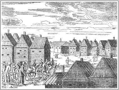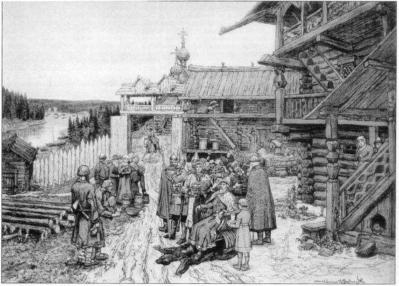 Мы уже сказали, что первообразом древнего русского жилища была клеть, из которой потом образовалась изба, до сих пор почти единственное жилище нашего крестьянина Изба и клеть составляли, так сказать, основу его двора. Обыкновенно изба была поземная и черная, то есть курная, срубленная прямо на пошве или на ж>дза.ва.лье28, с волоковыми окнами, от 6 до 8 вершков длины и 4 вершков ширины29, которые располагались почти под потолком, для пропуска в них дыма, и походили более на щели, нежели на окна. Волоковыми они называются потому, что их не затворяли, а задвигали, или заволакивали, особой крышкой или доской. У некоторых изб были дымницы, или дымники, вероятно, деревянные трубы, какие нередко встречаются и теперь; впрочем, эти дымницы составляли, кажется, принадлежность белых изб, о которых мы еще будем говорить. Напротив избы у семейных и зажиточных людей ставилась клеть – летний холодный покой, также с волоковыми окнами. Место под общею кровлей, между клетью и избой, называлось сенями. Под клетью, которая в иных местах называлась повалушею и даже горницею, почти всегда был глухой подклет, называвшийся нередко мшаником, в котором помещался домашний скот или кладовая.