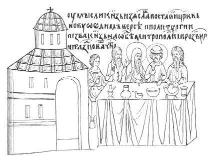 Угощение митрополита и его причта князем (Из «Сказания о Борисе и Глебе»)