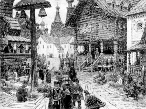 А. Васнецов. Старая Москва. У стен деревянного города. 1904 г.