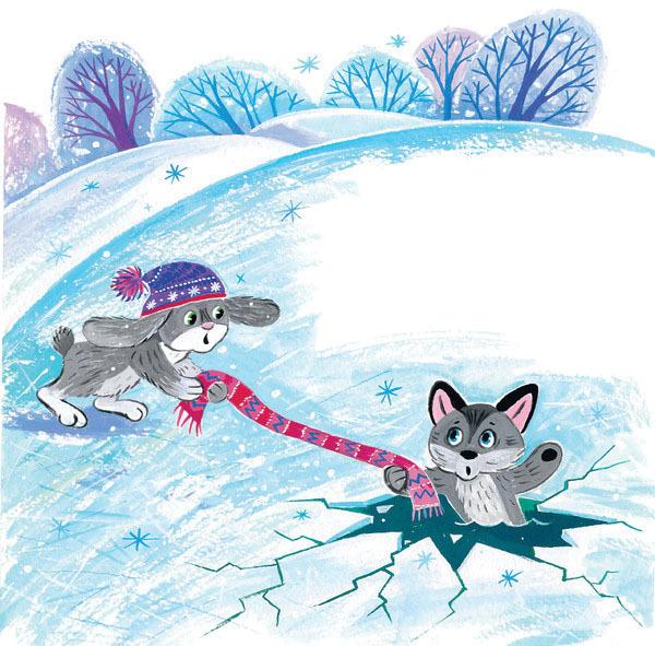 Серый Хвост ухватился за шарф, зайчонок потянул изо всех сил, и волчонок выбрался на лёд.