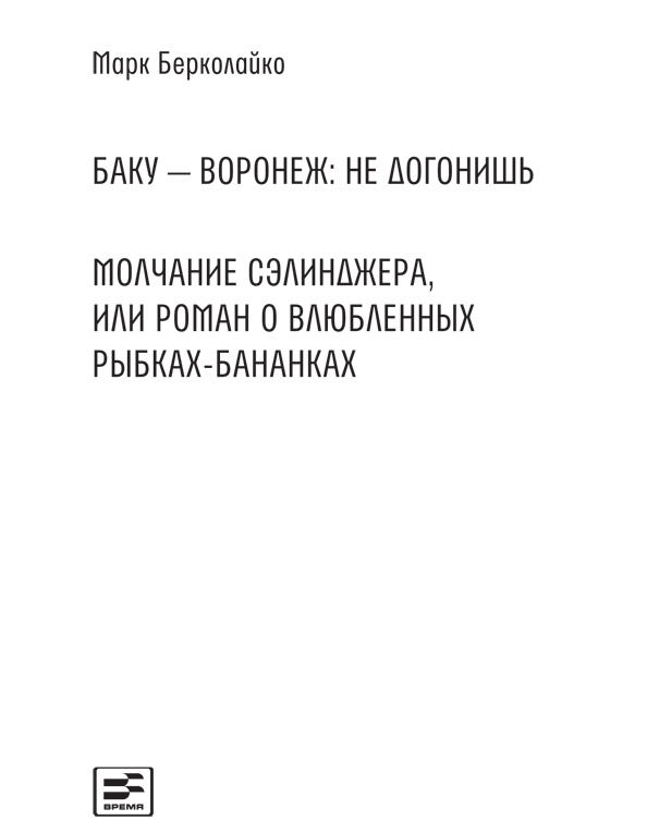 Баку — Воронеж: не догонишь : Документальная повесть ; Молчание Сэлинджера, или Роман о влюбленных рыбках-бананках / Марк Зиновьевич Берколайко. — М. : Время, 2019.. — («Проза времени»).