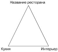 Правило второго треугольника. Первая вершина – название ресторана. Вторая – кухня. Третья – интерьер.