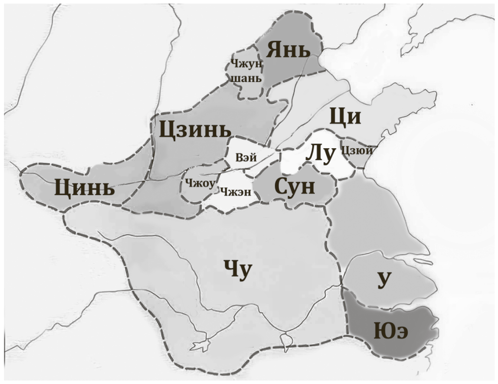 Это было весьма сложное, напряженное время, о котором нельзя не сказать несколько слов. Период Восточного Чжоу не зря имеет прозвание «китайской античности» и также именуется «классическим». Взрыв философской мысли в это время не был случаен, а отвечал конкретной исторической необходимости: на огромной территории в исторически ничтожное время формировались и гибли десятки (!) государственных образований.