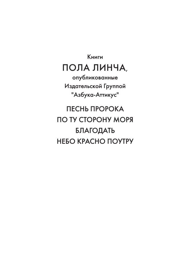 От этой книги искрятся и пылают литературные синапсы. Выкованный в пламени своего собственного языка, нового и удивительного, Пол Линч дотягивается до корней, ветвей и кряжей всего — и развертывает знаковый шедевр.