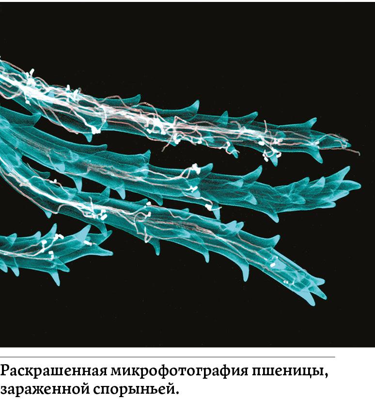 Веками никому не приходило в голову, что вспышки массовых галлюцинаций в средневековых деревнях могли быть вызваны употреблением в пищу ржи, пораженной грибковым заболеванием. (Этот вывод был сделан лишь в XVII веке.) Причудливые, непомерно крупные зерна черного цвета не были чем-то из ряда вон выходящим: пара дефектных колосьев в урожае ржи — ничего слишком уж необычного. Наверняка земледельцы обращали внимание на их странный вид: порой пораженные спорыньей зерна втрое превышают длиной здоровые, но в XIII веке едой, прямо скажем, не разбрасывались. Как бы диковинно ни выглядели злаки, их наверняка собирали и перемалывали.