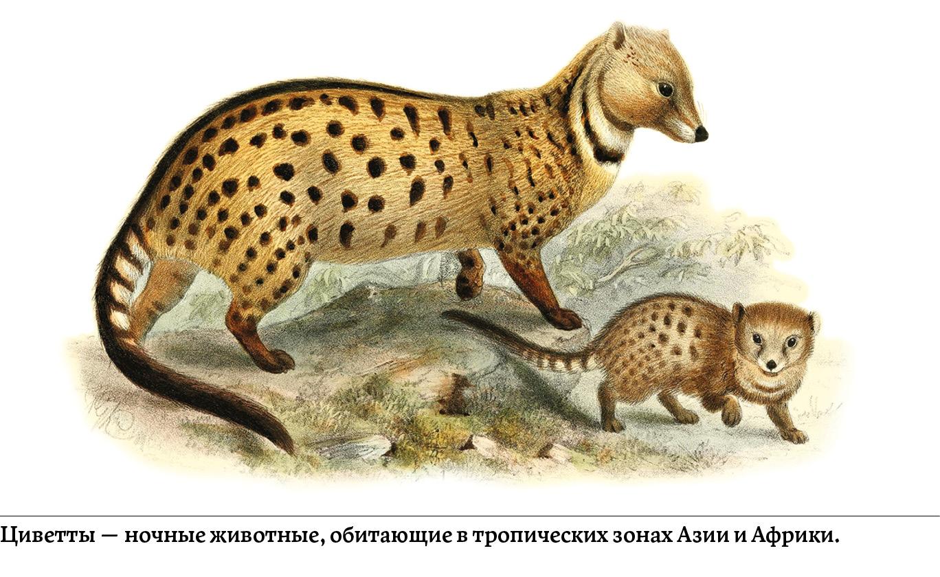 [1] Циветты — млекопитающие, считающиеся промежуточным звеном, через которое атипичная пневмония передалась от летучих мышей человеку. Мясо этих животных употребляют в пищу жители некоторых провинций Китая. (Здесь и далее примеч. перев.)