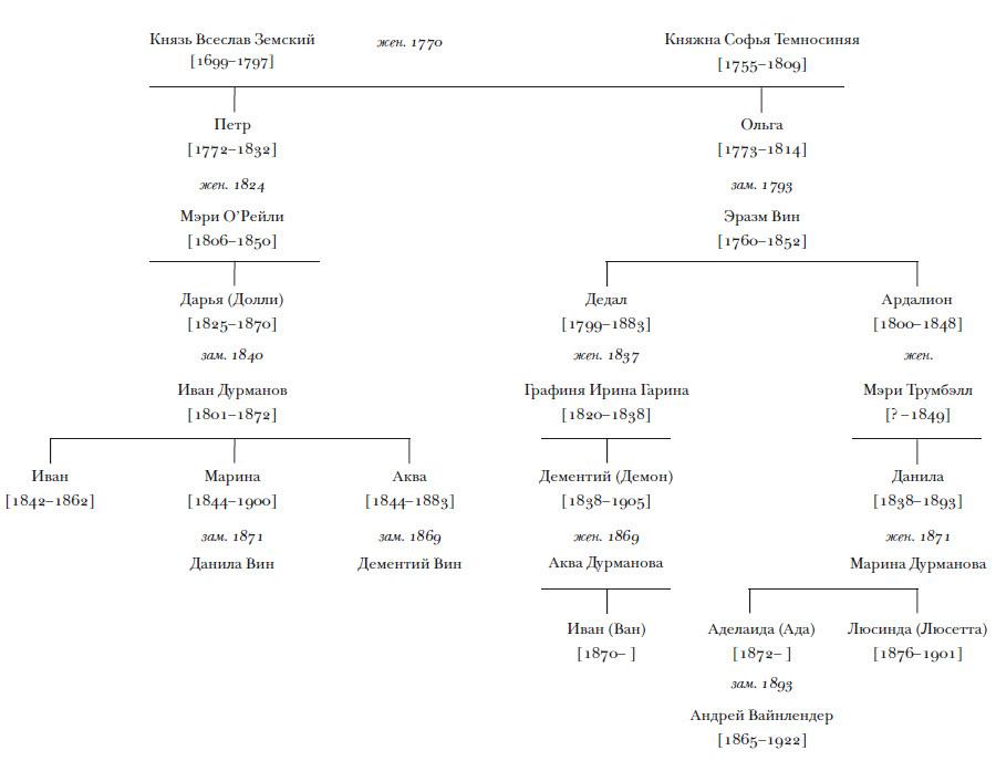 Дарья (Долли) Дурманова, бабка Вана по материнской линии, была дочерью князя Петра Земского, губернатора Бра-д’Ора, американской провинции на северо-востоке нашей обширной и разнообразной страны. В 1824 году князь женился на франтоватой светской особе, ирландке Мэри О’Рейли. Долли, их единственное дитя, родилась в Бра, и в 1840 году, нежных и своенравных пятнадцати лет от роду, обвенчалась с генералом Иваном Дурмановым, комендантом Юконской крепости и мирным помещиком, владевшим землями в Северн Тори (Сѣверныя Территорiи), этом лоскутном протекторате, который до сих пор любовно называют «Русской» Эстотией, гранобластично и органично смешанной с «Русской» Канадией, иначе называемой «Французской» Эстотией, где не только французские, но также македонские и баварские поселенцы наслаждаются чудным климатом под звездами нашего полосатого американского флага.