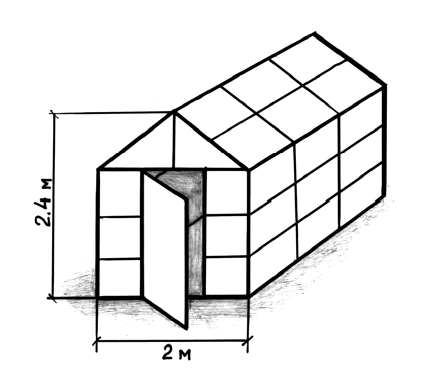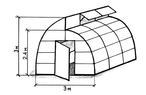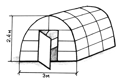 Арочная теплица (рис. 1а) обычно имеет ширину 2 м, 2,5 м или 3 м и длину от 1,9 м до любой произвольной длины, кратной 1,9 м. На мой взгляд, удобнее использовать теплицы длиной около 6 м и шириной 3 м.
