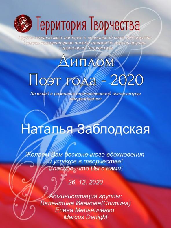 Первая онлайн-премия «Поэт года» по версии группы Территория Творчества в социальной сети ВКонтакте