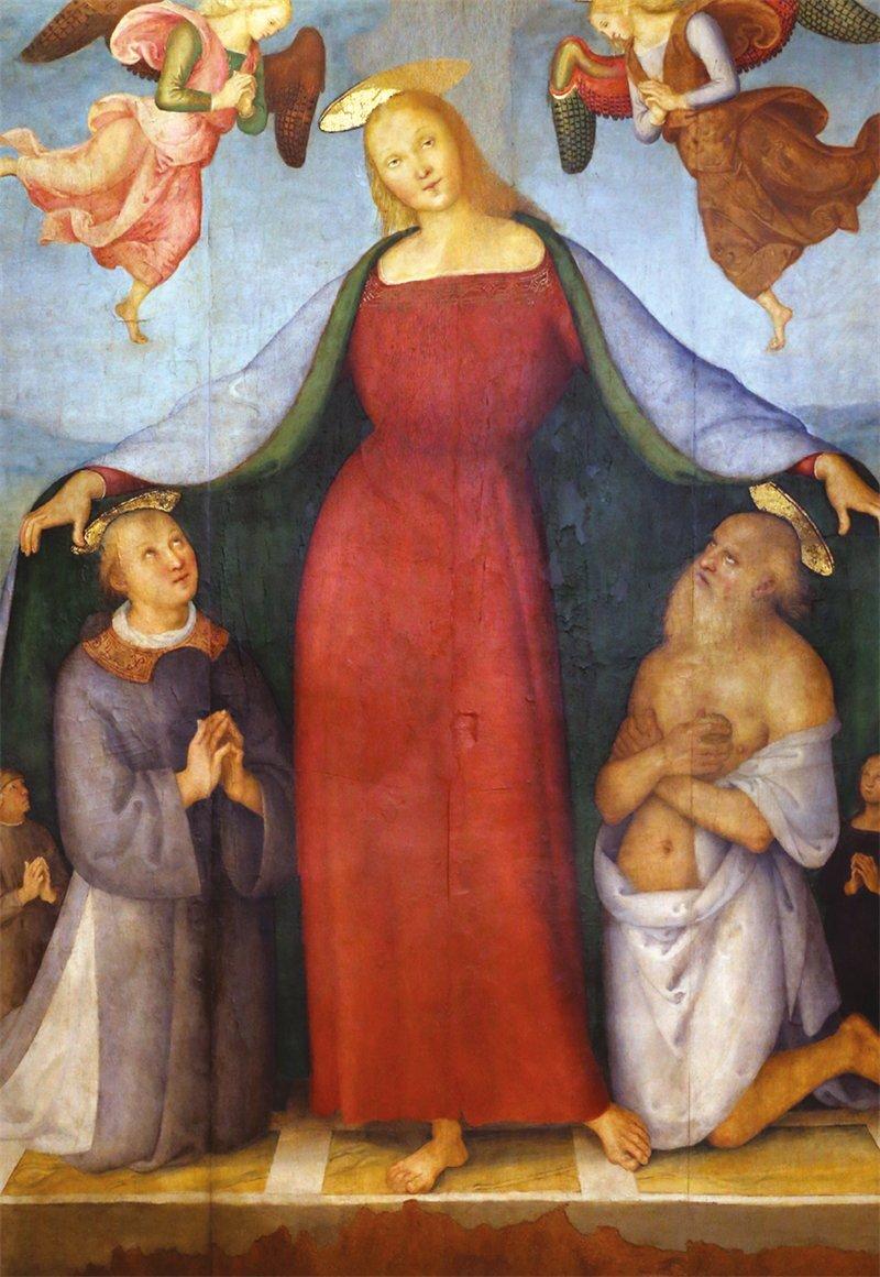 Перуджино. «Мадонна Милосердия», фрагмент (ок. 1510). Была украдена из Городского музея Бетонны в 1987 году