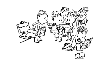 Потом мама купила мне портфель, а с портфелем можно здорово повеселиться после уроков, когда кидаешь его в ноги ребятам и они падают, и мне не терпелось скорее увидеться с друзьями, а потом мама взяла мне короткие штаны, похожие на кобуру для пистолета, но вместо пистолета я получил точилку для карандашей, похожую на самолёт, ластик, похожий на мышь, карандаш, похожий на флейту, и ещё кучу всяких вещей, похожих на другие вещи, а со всем этим в школе тоже можно разные штуки вытворять.