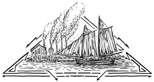 И правда, на всех объявлениях повторялась одна и та же фраза: «Каллахан меняет ваш мир!» и эмблема: шестеренка и элегантно обвившийся вокруг нее вьюнок. Этот Каллахан предлагал дрова, уголь, готовое платье, сталь, зубной порошок, — я не мог понять, как один человек может делать столько всего одновременно. А еще я вспомнил, где видел тот же знак: на борту некоторых кораблей в порту Ливерпуля. И Бен, похоже, вспомнил тоже.