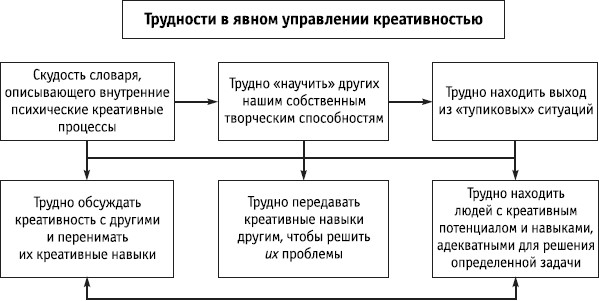 Явное управление личной и групповой креативностью возможно и необходимо, но сопряжено с определенными трудностями, поскольку требует расширения словаря и создания работающих моделей, связанных с процессом и структурой креативности.