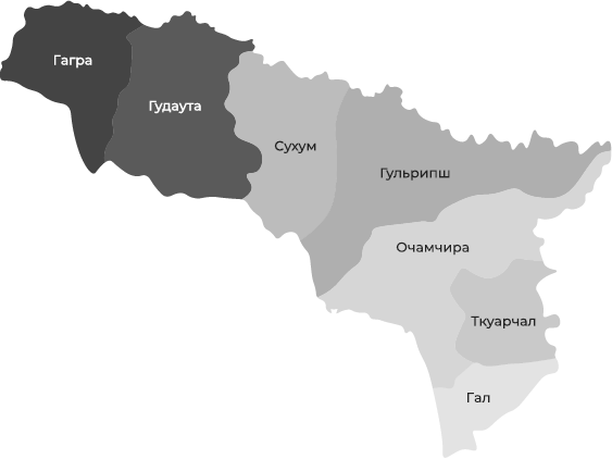 Средняя плотность: около 28 человек на квадратный километр. Наиболее высокая концентрация жителей наблюдается в столице — в Сухуме. В некоторых районах, таких как Сухумский, плотность значительно ниже.