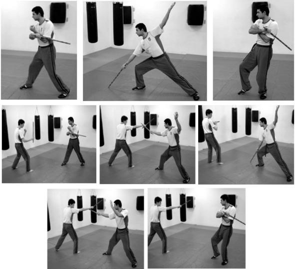 Абанико корто — удар на ближней дистанции в голову, корпус или руку противника (рис. 1). Абанико ларго — удар на дальней дистанции в вооруженную руку противника или его впереди стоящую ногу (рис. 2).