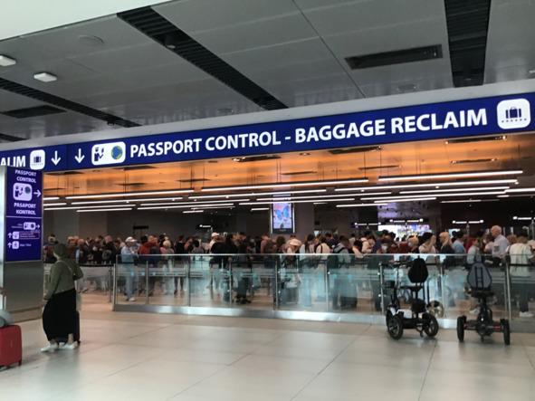 Новый аэропорт считался супер-дупер современным, но самолет не подъехал к рукаву, а заставили тащиться вниз по лестнице на автобус, со всеми бебехами, как было принято лет тридцать назад (001).