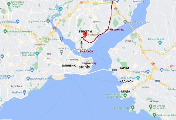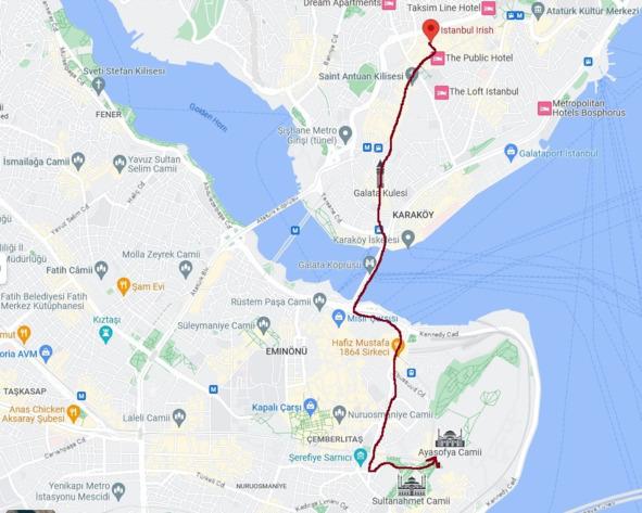 019 Маршрут поездки от Тюнеля к Айя-Софии