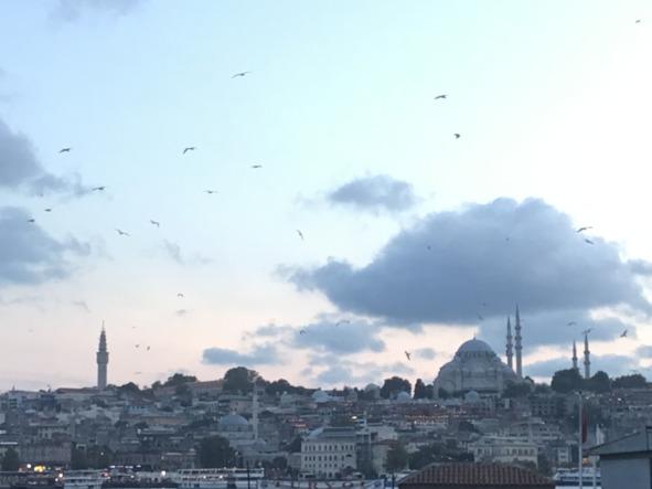 Галатский мост был весь заполнен прогуливающимся народом, почти как Истикляль. Откуда столько народу?! Стамбул принимает 300 000 иностранных туристов в день (не говоря о понаехавших). Оставалось поражаться. Париж отдыхает, не говоря о Берлине. На мосту не только туристы — вдоль всего моста стояли рыбаки с удочками. Огромное количество. Почти плечом к плечу на сотни метров. Что-то они ловили в мутной воде.