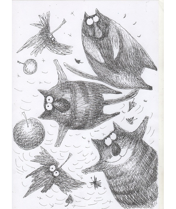 В полете пришло озарение, что главное — это не эйфория от полета, а приземление. Отметил, что лапы уже не те и надо менять тактику приземления. Молнией в мозгу обозначилось решение… При взгляде на висящие запоздалые груши… Грушей надо падать. Грушей…