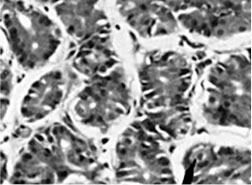 Рисунок 4. Париетальные клетки человека (гематоксилин-эозин, х200).