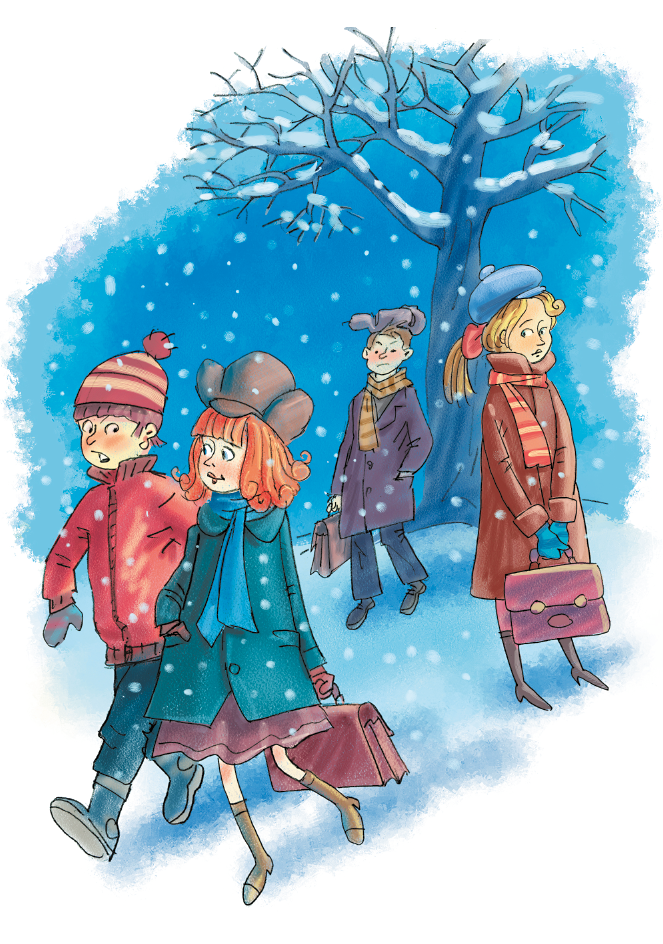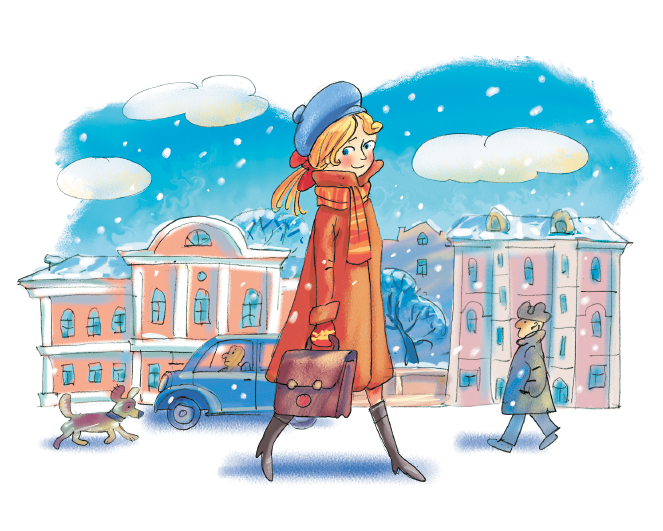Вчера мама подарила ей новые сапожки на меху, и теперь Аня шла, украдкой поглядывала на свои сапожки и слушала, как приятно хрустит под ними снег: хруп-хруп-хруп...