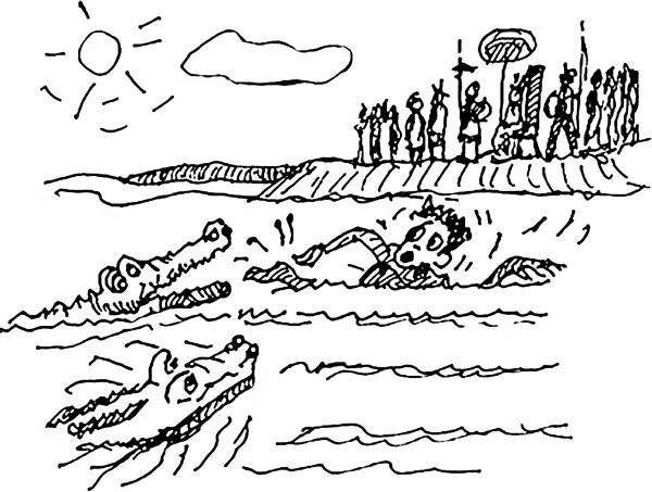 Не успел он договорить, как один юноша оказался в бассейне. Богач удивился – какое же мужество для этого надо иметь, какую волю, решимость! Крокодилы бросились за пловцом, попытались догнать его, но юноша плыл быстрее их и сумел живым и здоровым выбраться на берег. Когда пораженный богач спросил, хочет ли он получить треть его земли, тот сказал, что нет.