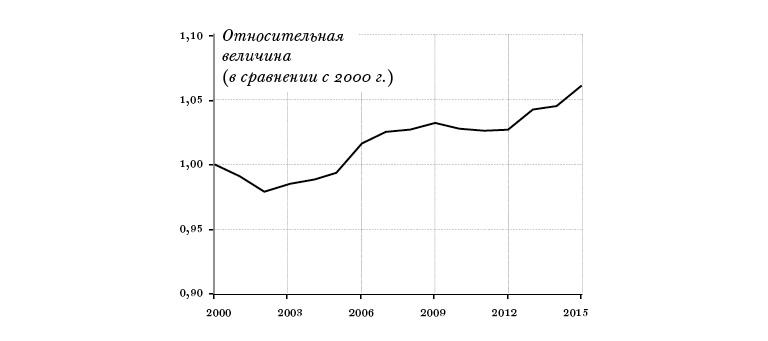 Рис. 1.5. Средняя по миру маржа, 2000–2015 годы