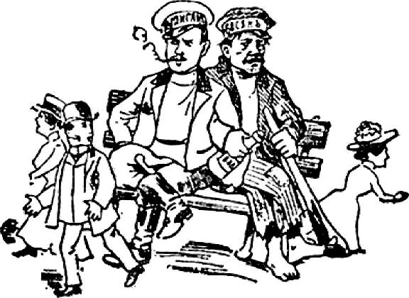 До каких курьезных нелепостей доходит у нас наша бдительная опекунша-полиция! Если извозчик везет троих седоков — городовые сейчас же хватаются за свои книги судеб и записывают № бляхи, что влечет за собой истечение из извозчичьего кармана трех рублей. Между тем, купчина-собственник на своей лошади может везти хоть кучу людей и никто не посмеет вмешиваться. Другая ерунда: — по воскресным дням после 5 часов вечера нигде нельзя купить спичек. Мелочные открыты, спички в них есть, а купить нельзя: воспрещено.