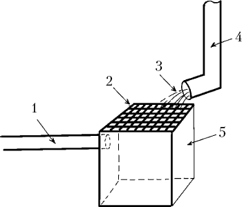 Отстойник под водосточной трубой: 1 – трубопровод для отвода воды к отстойникам второй очереди; 2 – решетка; 3 – поступление воды из водосточной трубы на решетку отстойника; 4 – водосточная труба; 5 – отстойник