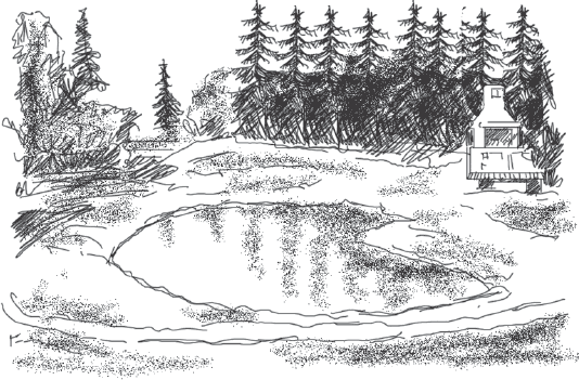 В прибрежной зоне даже на глубине 2–2,5 м не всегда можно найти сильные источники. В этом случае пруд должен иметь продольную форму вдоль реки. Ширина его может быть 5–6 м (это оптимальное расстояние для выкапывания котлована экскаватором с выбрасыванием грунта на обе стороны). Длину водоема проектируют, учитывая размеры дачного (приусадебного) участка. Два соединительных канала между рекой и водоемом будут обеспечивать проточное речное водоснабжение. Смена воды будет зависеть от длины водоема и скорости течения в реке.