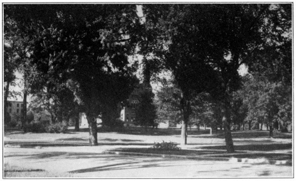 All barns in the towns are upon the market and dealers in lumber have opened a second-hand department where they dispose of what is left of the barns to farmers for the construction of granaries. Back to the farm applies now even to lumber. The horse, the cow, and the pig once formed a part of the family circle and how kindly and carefully were they provided for. The execrable back alley was conducted on the pig-sty basis. How slatternly the old back alley fence would look now that the parking system is adopted by neighbors. In earlier days the sumptuous houses were fenced or hedged always. After the old English idea the grounds were private. It remains now to have fences removed among denominations. They stand for the old time privacy and exclusiveness that once prevailed in business. Down south they forced business out into the open, requiring by ordinance that all employees shall be paid in the public square. The parking system proceeds upon the principle that a resident owes something to the town. The present ideal is to induce people not to shut the blinds or draw the shades when the house is lighted but to see in the evening how far each little candle can throw its beams.