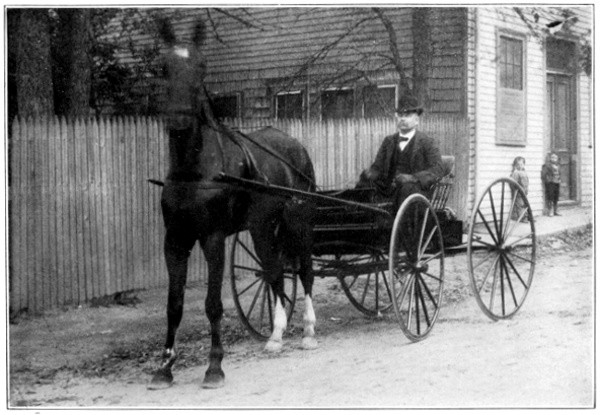 It was a holiday within a holiday to traverse the town with this lambkin. I came to the right place to squarely meet him. Here they introduce people to themselves. This stripling that I used to be seemed bent on hiring a horse and carriage to show me about. That was his only idea of hospitality. On the best streets in town, he did not have far to go, the livery stables were as convenient to the homes of the people as the school-houses and churches. A very convenient location was near the public library. His fear was that all the horses would be already taken as there were a good many visitors in town. If the high steppers were out we would find their keepers in more or less rickety arm chairs tilted back against the side of a wall awaiting their return.