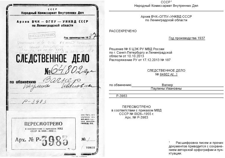 Следственное дело Паулины Вагнер № Р-3983.