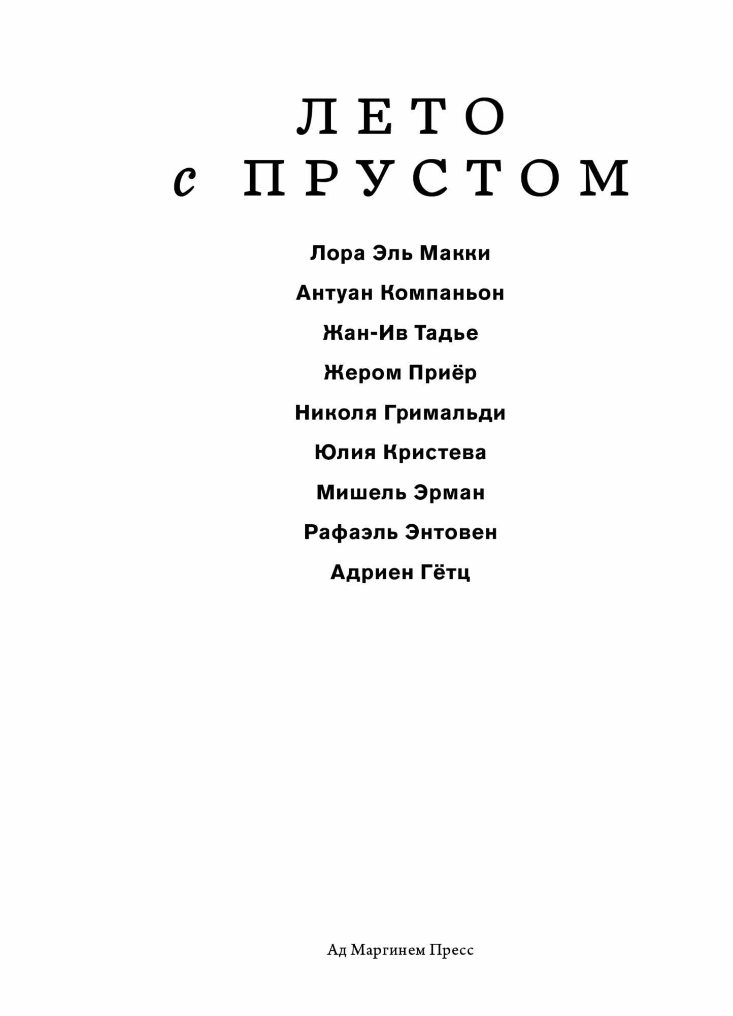 Посвятив последние годы жизни созданию романа В поисках утраченного времени, Пруст хотел, чтобы его будущие читатели смогли «читать в самих себе». Книга Лето с Прустом — это, помимо всего прочего, приглашение познать глубины собственной души. Она не стремится объяснить рассказанную историю. Она, скорее, пытается высветить пути самого текста и отыскать в нем слова, фразы, образы, которые могут говорить со всеми — с новичками и посвященными, с мечтателями и любопытствующими.