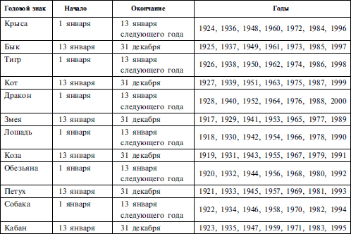 Механизм образования знаков таков. Для начала надо знать систему соответствия годовых и зодиакальных знаков. Вот она: