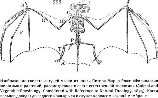 В реальности мы знаем, что активный (машущий) полет возникал в эволюции земных животных как минимум четыре раза. Птицы начали летать около 150 млн лет назад, когда по Земле бродили динозавры. Знаменитый ископаемый археоптерикс, относящийся примерно к этому времени, выглядит как нечто среднее между динозавром и птицей, и он немало озадачил ученых XIX в., включая Чарльза Дарвина. Напротив, летучие мыши развили способность к полету немногим более 50 млн лет назад, почти наверняка уже после вымирания динозавров. Крылья птиц и летучих мышей настолько отличаются друг от друга, что трудно поверить, что они выполняют одинаковые функции. У летучих мышей невероятно удлиненные пальцы, которые пронизывают все крыло и соединены тонкой кожной мембраной, наподобие перепонки на утиных лапах, только в этом случае перепонка растянута на всю длину конечности. У птиц плоскость крыла образована перьями, а не кожей, причем, в отличие от летучих мышей, кости передних конечностей у них проходят лишь по переднему краю крыла.
