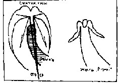 В звуке «r» подлетает язык: его кончик дрожит; струя воздуха сзади толкает язык; и срывается с места он, силяся побежать по направлению к выходу в свет — имитация жеста бега по времени — «r». (См. рис. № 2).